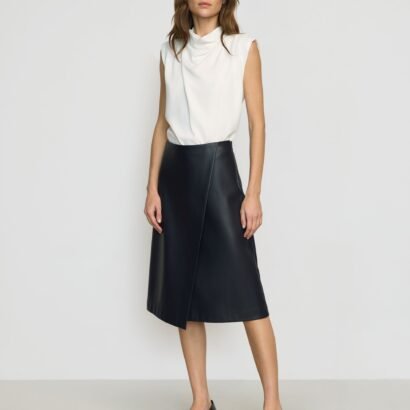 Be the first to review “Alba Asymmetric Vegan Leather Skirt”