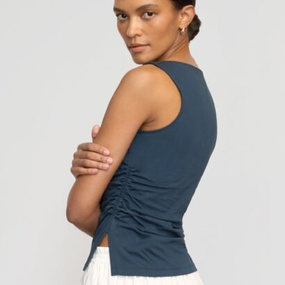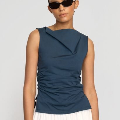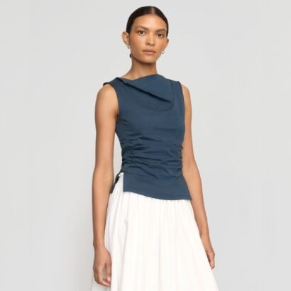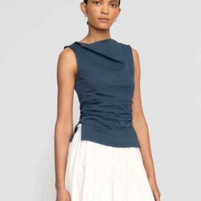 An effortlessly chic cowl-neck tee — Josie is a no brainer any day of the week, cut in a super soft luxe recycled cotton blend with shirred side seams for an elevated touch.