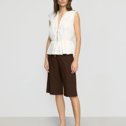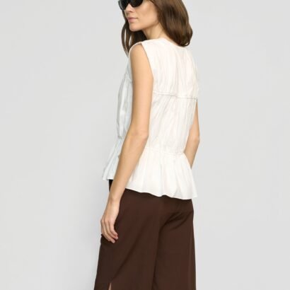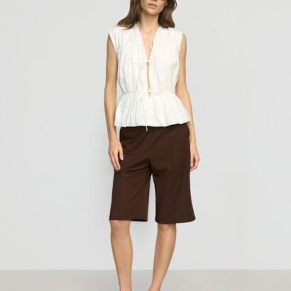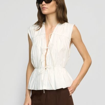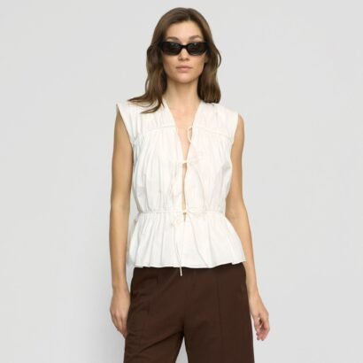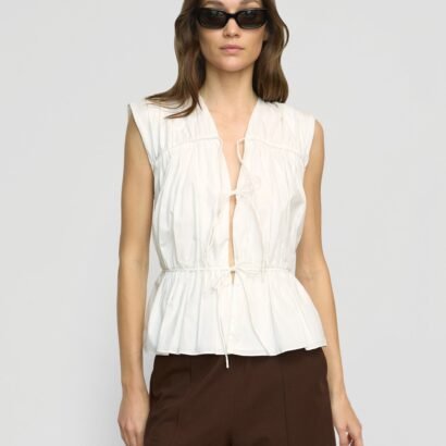 This tiered blouse with chic tie details is perfect for adding a feminine touch any summer look. We love to style Neha with breezy a short or skirt for sunny afternoons, or a pair of jeans for cooler nights.