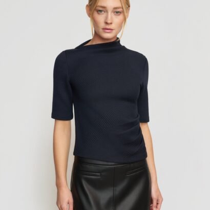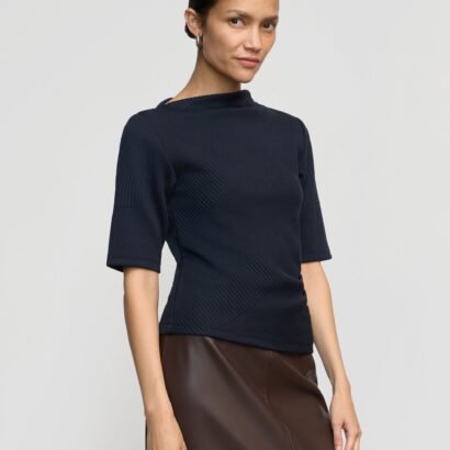 A sleek knit with directional ribbed details and an asymmetric neckline, Pauline is the ultimate update to your go-to tee. We love to style this versatile staple with a chic pant for an easy transitional look.