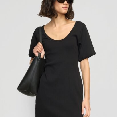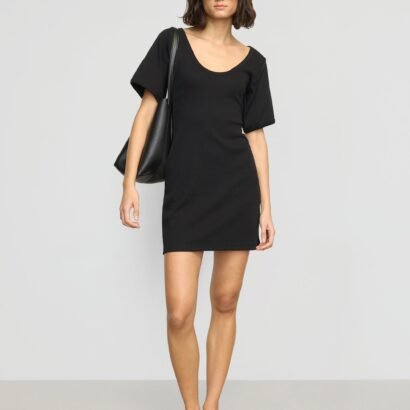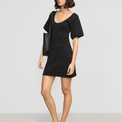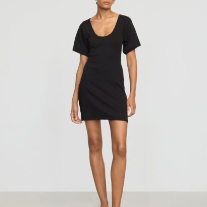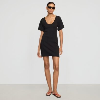 A minimal and design-forward take on the classic t-shirt dress, Rae features a flattering scoop-neck detail and sculpted sleeves for an elevated take on the summer staple.