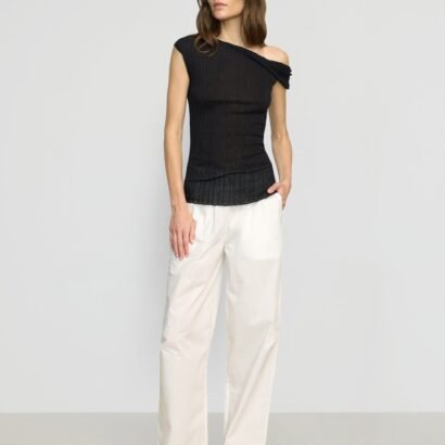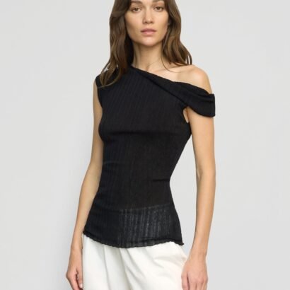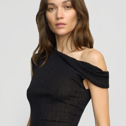 Effortlessly elegant and designed in a delicate semi-sheer knit with an off-shoulder silhouette, Saba makes a chic and subtle statement on any occasion.