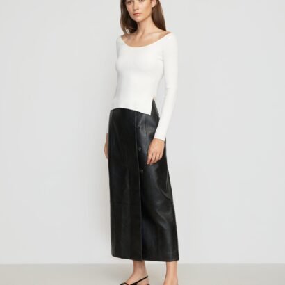 The everyday long sleeve gets a chic update with this open back, off-shoulder silhouette. We love to style Thais with a sleek skirt and warm long coat on chillier days.
